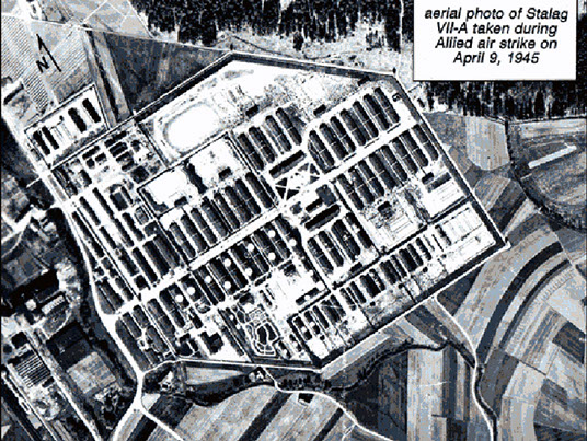 Stalag VII-A was Germany's largest prisoner-of-war camp during World War II, located just north of the town of Moosburg in southern Bavaria. The camp covered an area of 86 acres. During the height of the war, prisoners from every nation fighting against Germany passed through it. At the time of its liberation on 29 April 1945, there were about 80,000 prisoners in the camp.